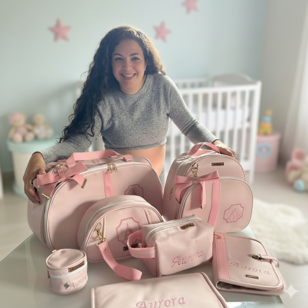 com bolsas e acessórios personalizados para bebês.